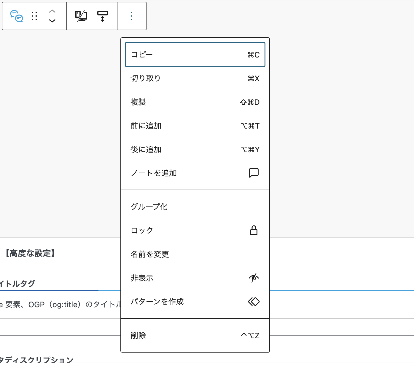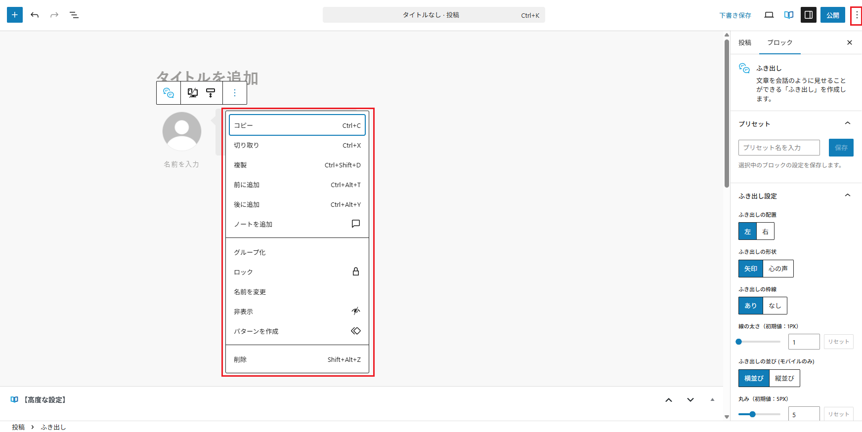 「ふき出しブロック」を含めた一部のブロックに対して