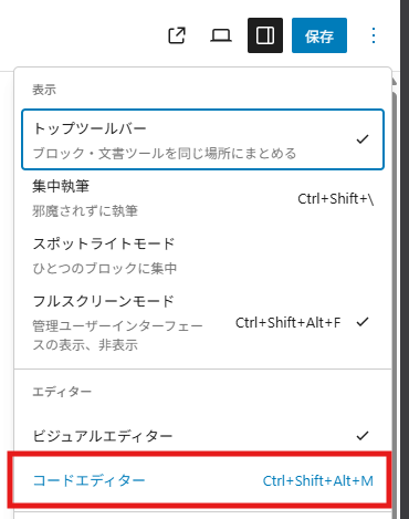 「コードエディター」をクリックしていただくことで