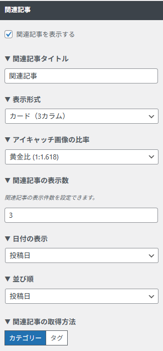 関連記事の取得方法を「カテゴリー」としていますが、関連記事ではなく最新の記事が表示されているように思います。