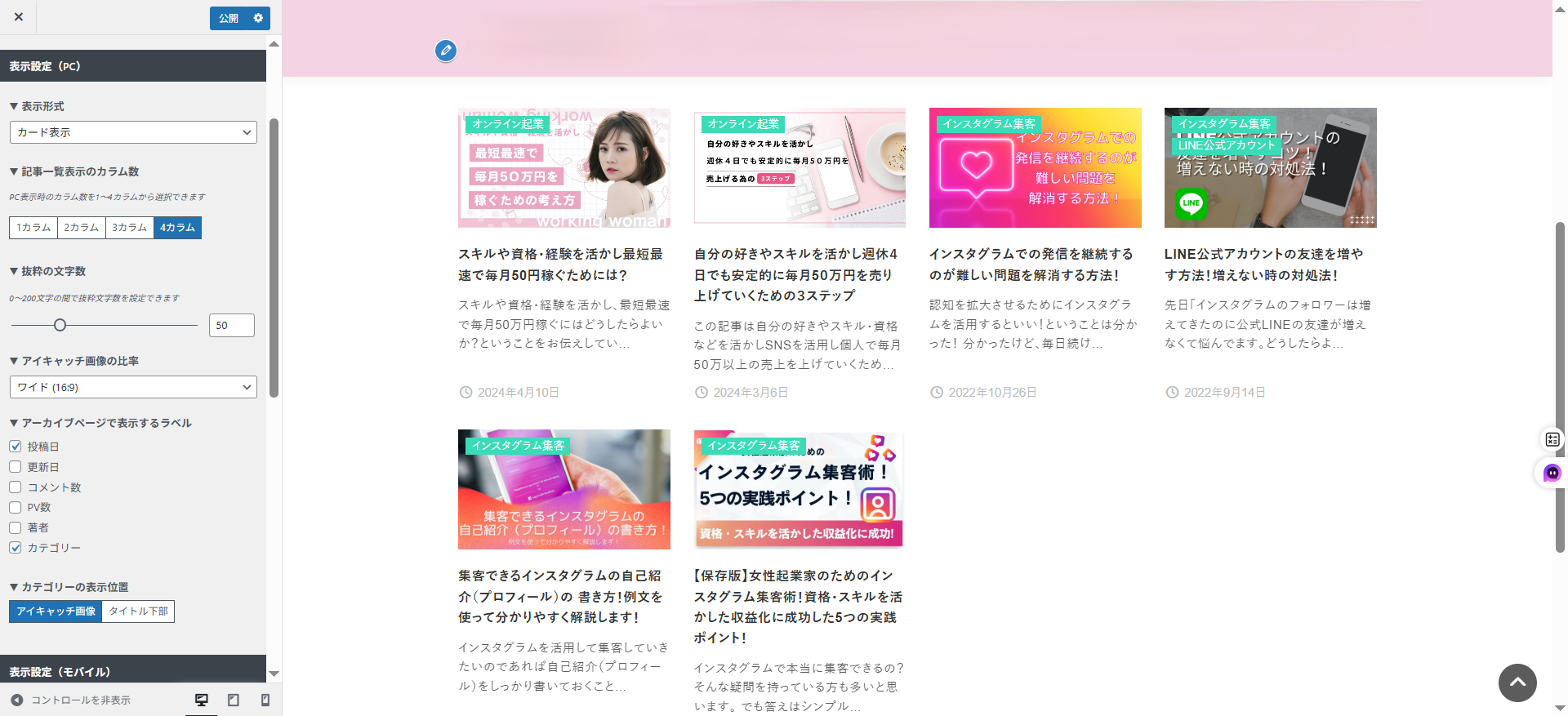 添付の通り、アーカイブの一覧ページの3段目のカラム数が設定通りになりません。