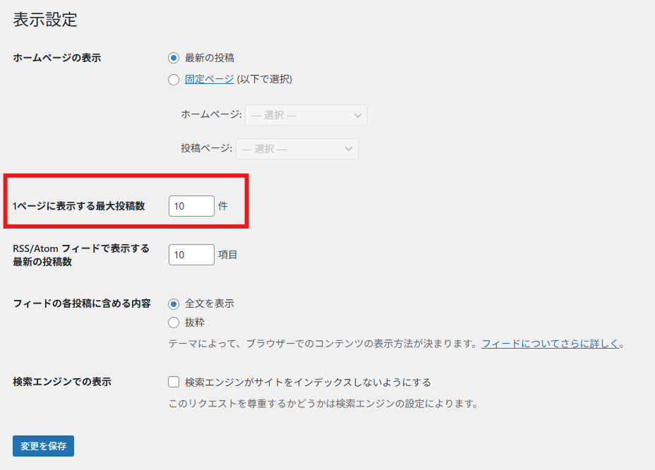 こちらで設定した数値に基づき、1ページにつき指定された件数が表示されるようになっています。テーマ側から追加で埋め合わせがくることはありません。