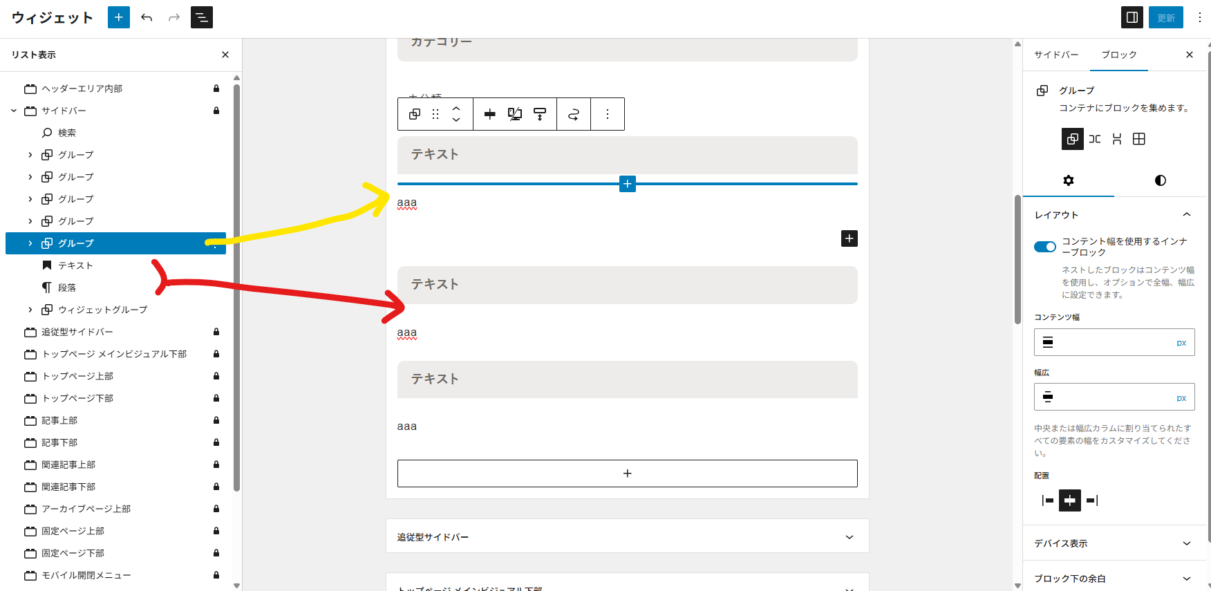 サイドバーで見出しのあとにテキストをやると別々で表示されてしまうのはどうにかなりませんか?