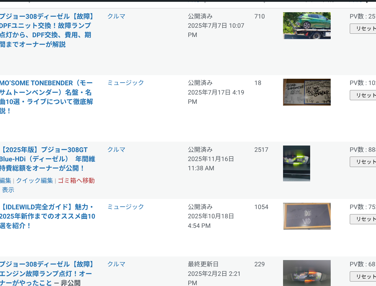 添付写真はPV順に並び替えた記事です。